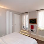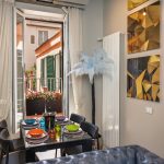 In the living area there is a contemporary kitchen equipped with cutting-edge appliances that fits harmoniously into spaces designed for maximum comfort. Also in the large and bright living area you can relax thanks to the presence of a comfortable sofa and television with OLED technology and a Hi-End stereo system. You will also find a small and charming balcony from where you can admire a small fountain from the 1800s … these things only happen in Rome.