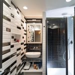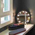 A living room with 2 beds thanks to a comfortable double sofa bed with a 20cm mattress. The en suite bathroom is embellished with black & white style ceramics of great visual impact.