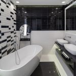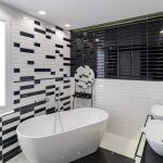 The master bedroom is spacious and welcoming with an en suite bathroom embellished with black & white style ceramics of great visual impact and with the presence of a large bathtub.