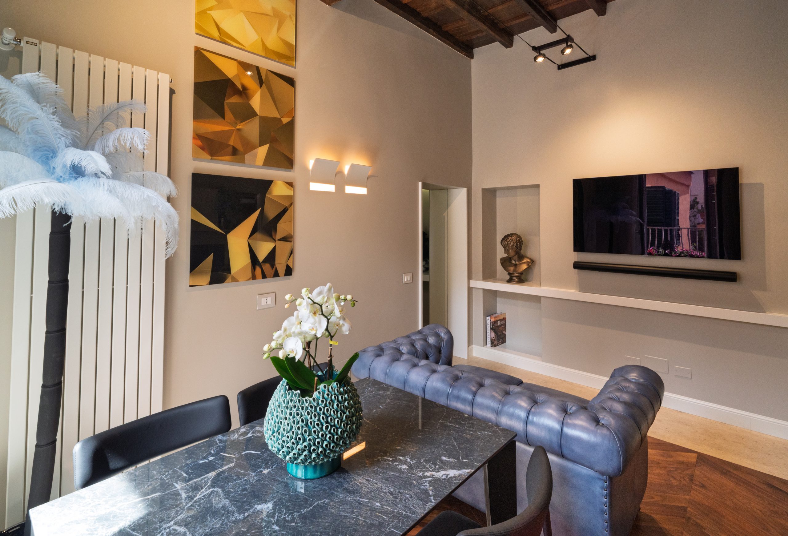 The CONDOTTI apartment is a perfect combination of contemporary elegance and historic charm. Located less than 200 meters from Piazza di Spagna, this type of apartment offers a unique living experience, enhanced by the timeless atmosphere of the Eternal City.