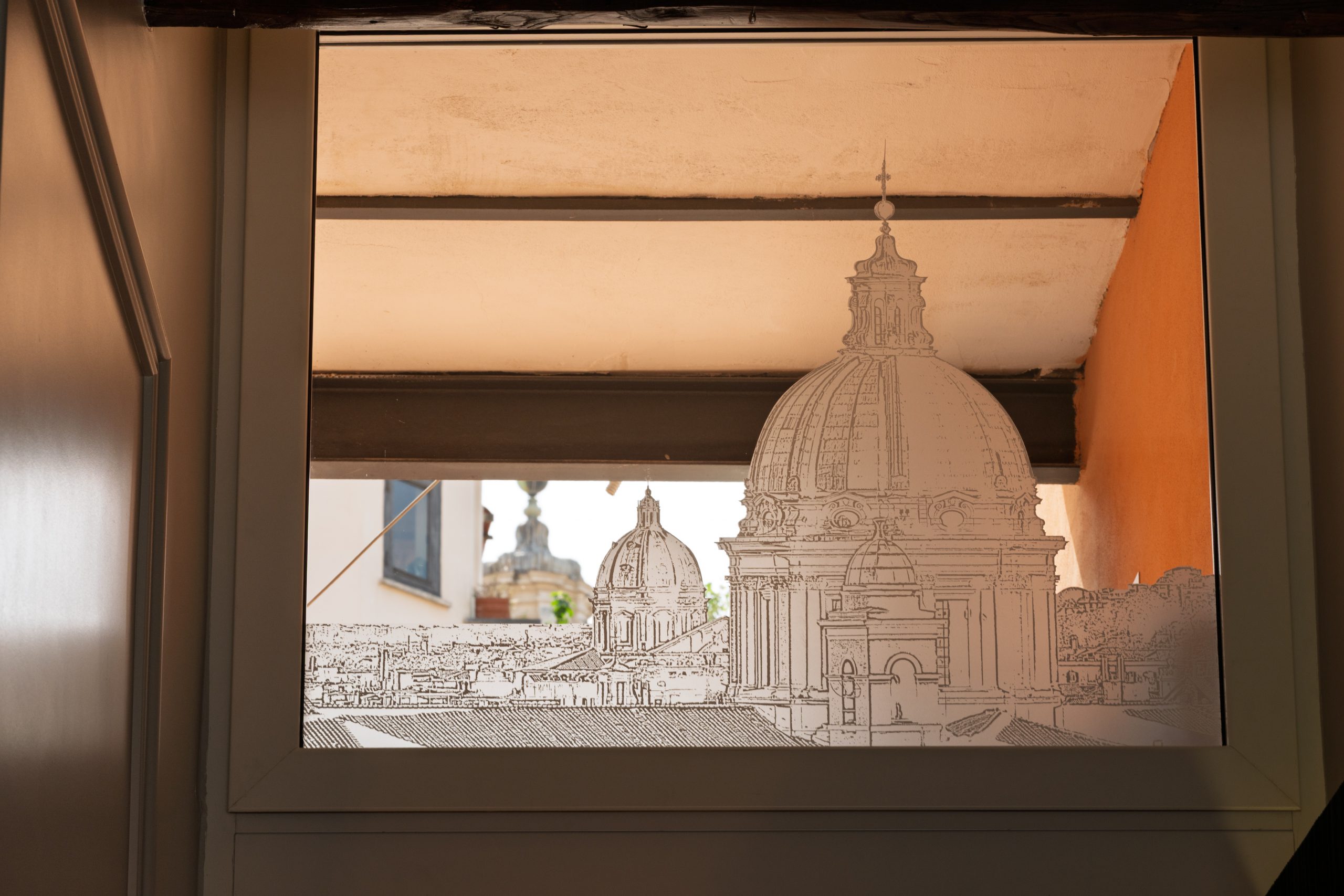On the top floor of the building the large condominium terrace offers the unique opportunity to admire the majestic dome of the Basilica of San Carlo and the famous roofs of Rome.
